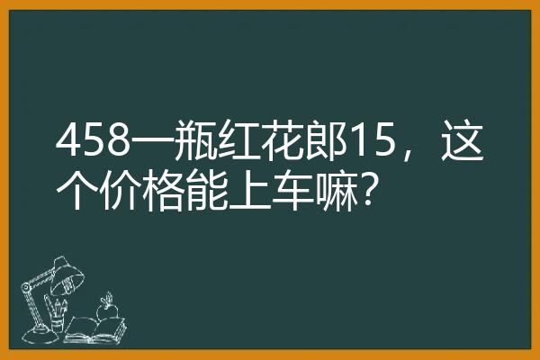 红花郎15是红花郎系列中的高端酒,官方标价为699元/瓶。市场上四百到五百多元不等。这个价格在酱香型白酒中也算是中高端了,品质还是不错的,口感醇厚、后味十足、顺滑柔和,整体感觉很不错。如果是从正规渠道458元能买到的话,完全是可以上车的。