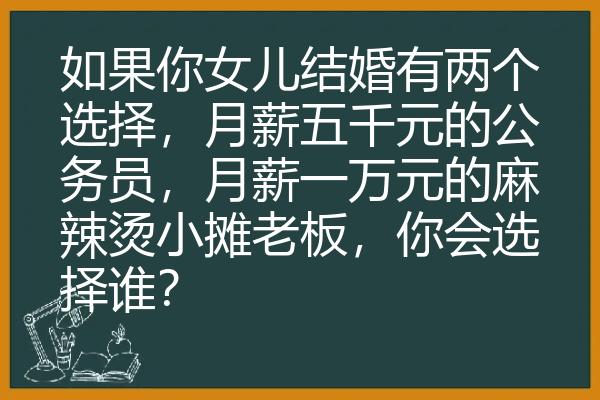 如果你女儿结婚有两个选择,月薪五千元的公务员,月薪一万元的麻辣烫小摊老板,你会选择谁?