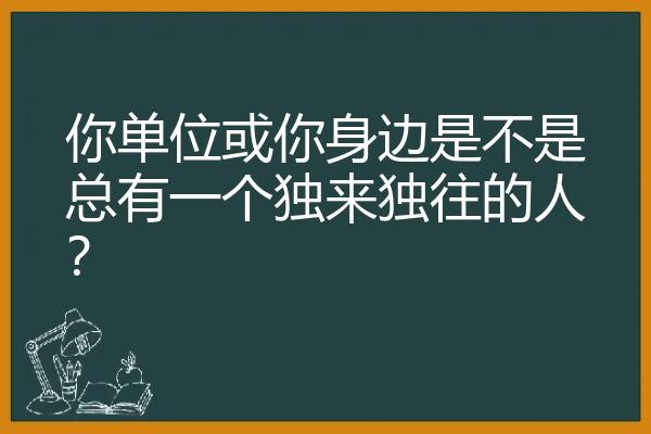 我自己就是一个独来独往的人。从小性格内向,在农村的时候不喜欢与人打交道,包括熟悉的人。其实那时候是怕跟人打交道,见面又不知该说什么。上学的时候也是孤独的一个人,喜欢把自己封闭起来,同学们对我的印象都是,我这个人很难结交,很孤傲。直到交了男朋友,我一下改变了许多,不再害怕与人打交道,不害怕与人交流,但还是没有几个可以谈心的好朋友。在单位上班下班,两点一线,因为同事们都比我年龄小,好几个都和我女儿一样的年龄,平时也没有共同讨论的话题,所以我终究还是一个人独来独往。