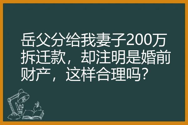 岳父分给我妻子200万拆迁款,却注明是婚前财产,这样合理吗?