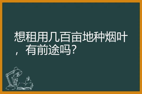 如题,租几百亩地种烟叶,有前途吗?应该有前途,国家禁烟并不是全面性的,并不是砍掉烟厂、禁止生产和销售。只是相对提高一点烟价。