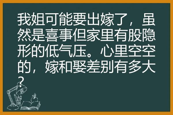 我姐可能要出嫁了,虽然是喜事但家里有股隐形的低气压。心里空空的,嫁和娶差别有多大?