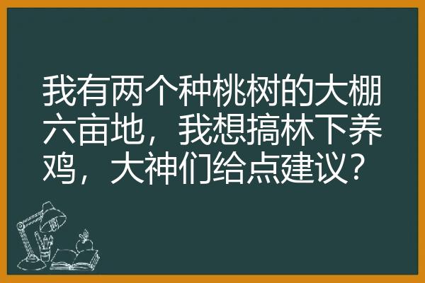 我有两个种桃树的大棚六亩地,我想搞林下养鸡,大神们给点建议?