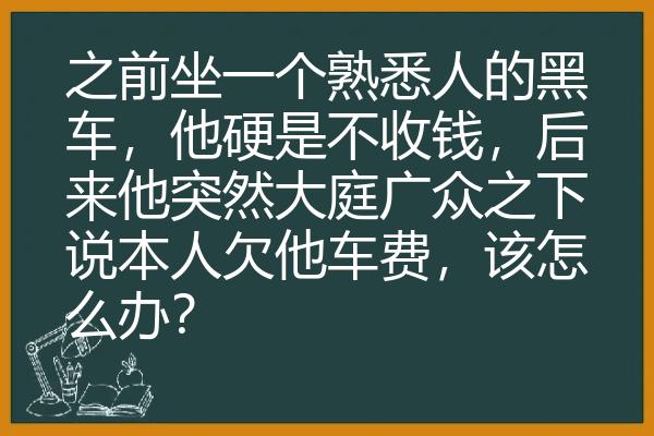 之前坐一个熟悉人的黑车,他硬是不收钱,后来他突然大庭广众之下说本人欠他车费,该怎么办?