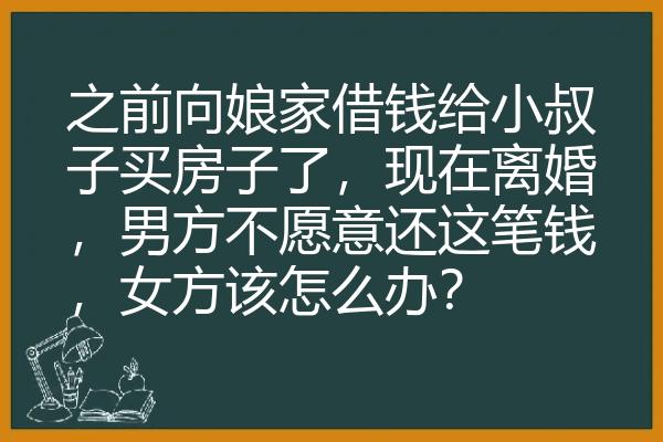 之前向娘家借钱给小叔子买房子了,现在离婚,男方不愿意还这笔钱,女方该怎么办?