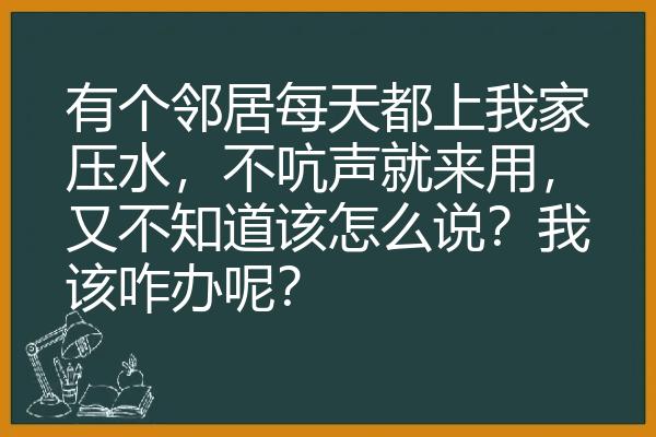 有个邻居每天都上我家压水,不吭声就来用,又不知道该怎么说?我该咋办呢?