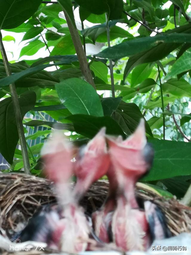 此时,它们还不会采食,仍然需要它们的父母去采来食物在树枝上喂它们,而且有时候大鸟叼着食物引逗它们在树枝上飞来飞去,只有这样才能得到大鸟喂它们的食物。