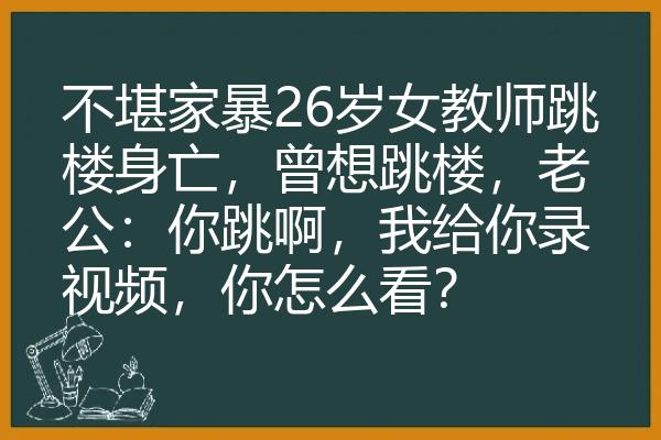 不堪家暴26岁女教师跳楼身亡,曾想跳楼,老公:你跳啊,我给你录视频,你怎么看?