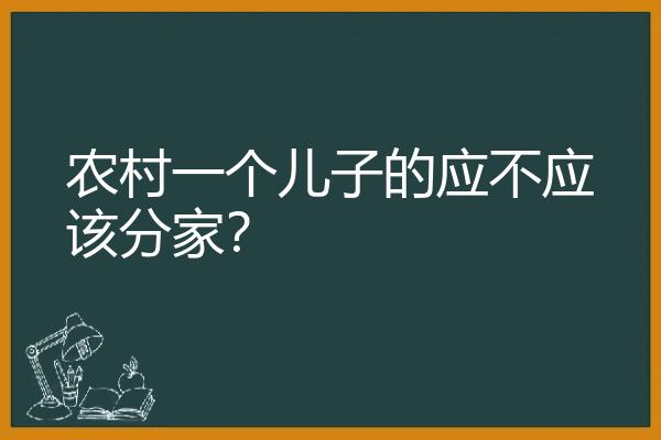 农村一个儿子应不应该分家,我认为没有必要分家。过去农村一个儿子,全家人都在一起种责任田,田地都在一起,父亲就是队长,在一个家里饭桌上就可以安排干什么农活?分工使用农具就方便多了。现在时代不一样了,小孩在家里种田的很少,大多数都在外面打工,有的在外面还混得不错,添置了房产,有的在外面生活找了媳妇生了孙子,分不分家应该是一样的。孝敬父母是每一个子女应尽的义务,不管你是住在一起还是身在异地都要知道感恩,根据自己的实际情况,制定孝敬父母的方案。每年什么时候回去,每年付多少生活费,生病了怎么照顾都在想好。做子女的不要等到子欲养而父不在后悔。如果你认为你长大了翅膀硬了,不需要父母关心了。父母亲是你的累赘,那你就分家,父母老了还有什么办法。孝顺父母只有凭你的良心。如果你同意我的观点和意见,请关注我请在下方留言,我们一起共同学习探讨。