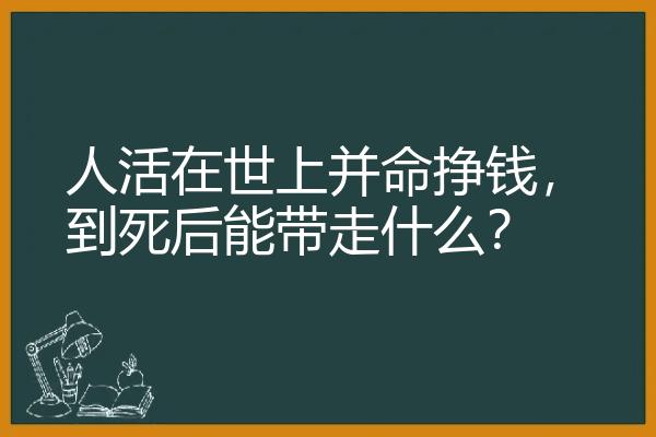 总之,人活在世上拼命挣钱是为了生存,为了生活。死后并不能带走什么,赤裸裸的来,赤裸裸的去,什么金钱、名利、地位、事业等,都不可能带走。若一定要说带走什么,我想,只要生前努力过、奋斗过、拼搏过,死时就无怨无悔,就心安理得,就没有什么遗憾,就没有什么不舍,开心地来,安心地走,不白来世上走一遭。人活在世上并命挣钱,到死后能带走什么?
