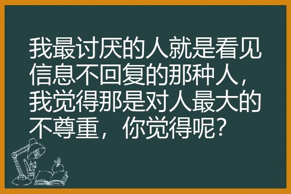 我最讨厌的人就是看见信息不回复的那种人,我觉得那是对人最大的不尊重,你觉得呢?