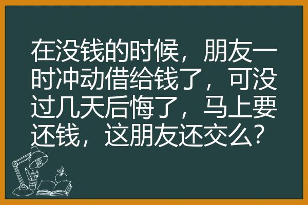 在没钱的时候,朋友一时冲动借给钱了,可没过几天后悔了,马上要还钱,这朋友还交么?