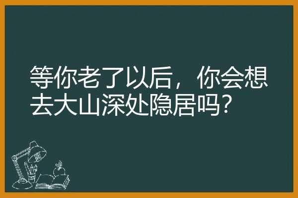 等我们老去的那一天,我们似乎就已经看破了红尘,红尘让我们明白,生命的最终目的,就是为了活着有意义,有价值,同时,还要有自己的快乐。当我们年轻的时候,为社会,为家庭创造了许多价值,现在,我们真的就要回到属于我们自己的快乐中去了。来吧,当我们老的时候,没有用的时候,就让我们找个地方,最好就在大山深处,隐居起来,好好地过着属于自己的老去的生活吧。也许,这只是梦想,但是,我们都希望能实现它。