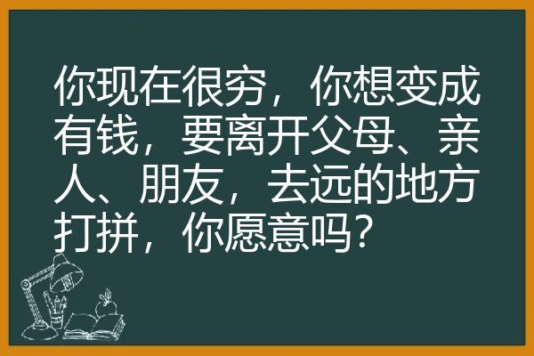 你现在很穷,你想变成有钱,要离开父母、亲人、朋友,去远的地方打拼,你愿意吗?