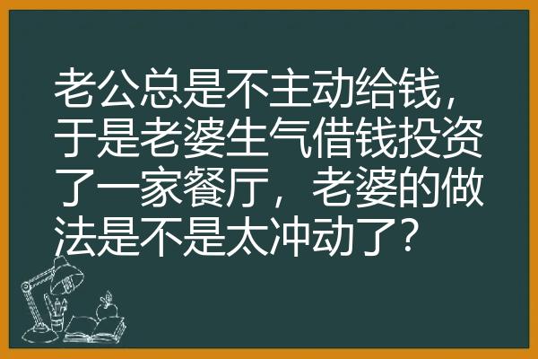 老公总是不主动给钱,于是老婆生气借钱投资了一家餐厅,老婆的做法是不是太冲动了?