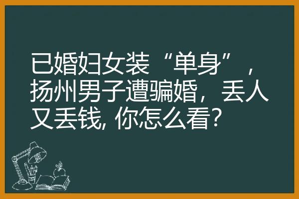 已婚妇女装“单身”,扬州男子遭骗婚,丢人又丢钱, 你怎么看?
