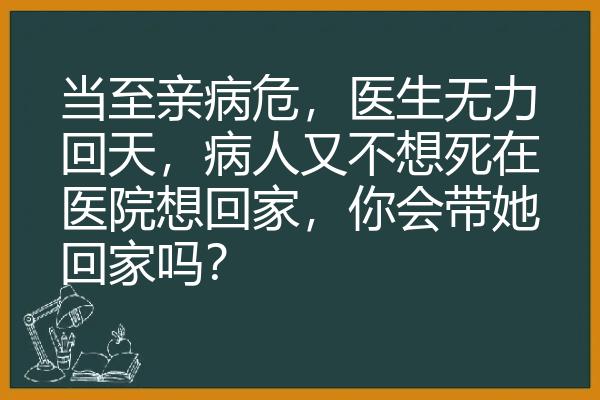 当至亲病危,医生无力回天,病人又不想死在医院想回家,遇到这种情形,作为她的亲人,应该带她回家,满足她的心愿!