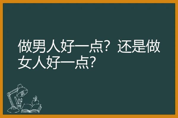 做男人好一点还是做女人好?我是女的。我认为做女人好。做女人生儿育女。相夫教子。守好本分就是好女人了。做男人却不同。好男人都要顶天立地。要有事业心。要让家人过的好。受了委屈还不能多说。说多了就会认为你跟娘们儿一样。唠叨。受的委屈也不能哭。男儿有泪不轻弹。总之做一个好男人很难。若能选择,下辈子我还做女人。