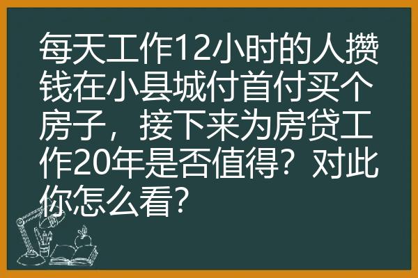 每天工作12小时的人攒钱在小县城付首付买个房子,接下来为房贷工作20年是否值得?对此你怎么看?