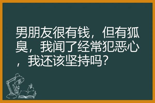 所以,题主,你要不要坚持,我看还是你自己扪心自问:你是爱男朋友的钱呢?还是爱他的人?如果是有钱,建议你放弃。如果你爱的是他的人,建议你坚持,因为他有钱,完全可以治愈他的狐臭。我的老婆就是个例子。