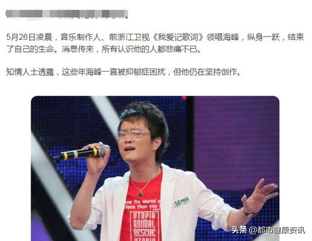 5月26日凌晨,年仅39岁歌手海峰跳楼身亡,实在让人惋惜,据说他有长期严重的抑郁症。