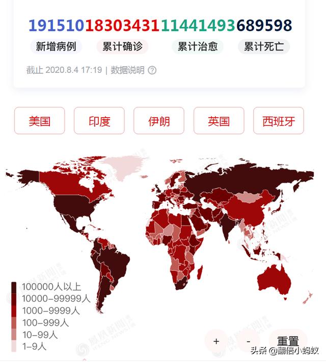 目前,全球已经感染超过1800万,很多国家的感染率都超过百分之一了,关键是疫情还不可控,感染人数不断上升,而且基数越大,后面感染的人数越多。