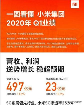 昨天小米公布了自家一季度的财报,我觉得亮点有好几个,一个是AIoT业务持续增长,2020年或者说从18年开始AIoT这一块已经被重视了起来,不仅仅只有先发力的小米,华为等等包括今年的OPPO也开始来了,所以AIoT这一块小米占据先机。一个是海外的收入占比居然和国内基本一致,占比一半一半,所以是非常健康的。另一个则是手机业务,一季度手机的销量达到了2920万台,还有上涨的空间,简直不可思议。
