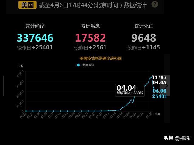 全世界就美国的新型冠状病毒疫情是最为严重,美国已经连续三天,每天以三万例感染患者的速度在增长。说三天的时间,美国感染人数从20万直接跳到了30万。截止到4月6日12:00,美国的确诊病例是337620例,死亡人数是9643人。而美国新增感染人数达到了27827人,这相比较昨天的35000的感染人数有了一定幅度的回落。按照美国对外公布的数据来看,美国的确是出现了感染人数有所下降的态势。