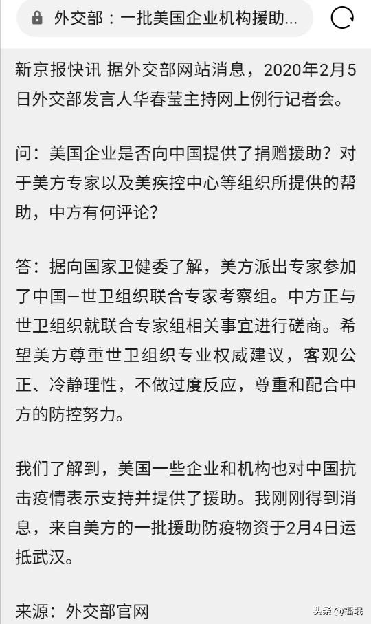 当我们爆发新冠肺炎以后,美国政府选择隔岸观火,美国民间的企业和机构还向我们捐赠过物资,但是美国政府什么都没干。