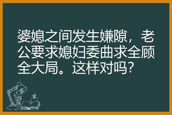 婆媳之间发生嫌隙,老公要求媳妇委曲求全顾全大局。这样对吗?