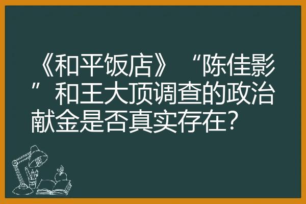 《和平饭店》“陈佳影”和王大顶调查的政治献金是否真实存在?