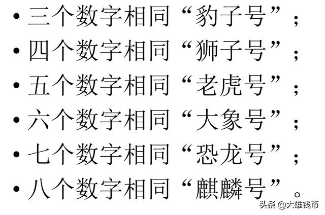 钱币收藏中的高价值号码目前玩靓号比较重视的高价值号码有以下几种: