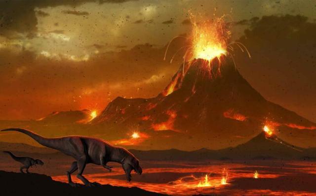 这个时期点,现在一般倾向于出现了突发性的生命大灭绝事件,比如巨大的外星地撞击地球,超级火山喷发,或者太阳系进入了恶劣的宇宙环境中,破坏了整个地球生态圈的平衡,有直接灭杀的,有因为食物严重短缺饿死的,有因为产生大量有毒物质,毒病而死的。总之,这一次生命大灭绝,让体型巨大的恐龙类生物,首当其冲。