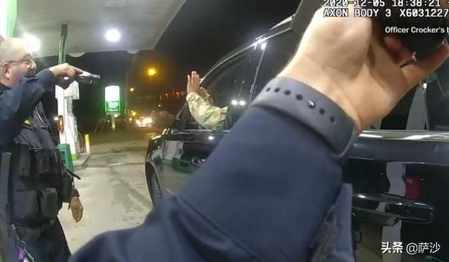 但是这个美国黑人军官的做法就让人很迷惑,他没有遵照警察的命令立即停车,而是继续开,开进了一个加油站。这种行为很容易让美国警方认为这个驾驶员有问题,马上追了上去。