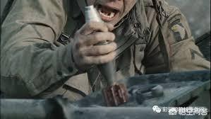 拯救大兵瑞恩剧照,“找人小队”和瑞恩所在的101师部分人与德军装甲部队奋战的那场戏,瑞恩将迫击炮引信保险拔出去之后,往迫击炮座磕一下交给米勒上尉,扔出去之后将进攻的德军炸的血肉横飞!这就这个镜头引发了军迷们的热议。