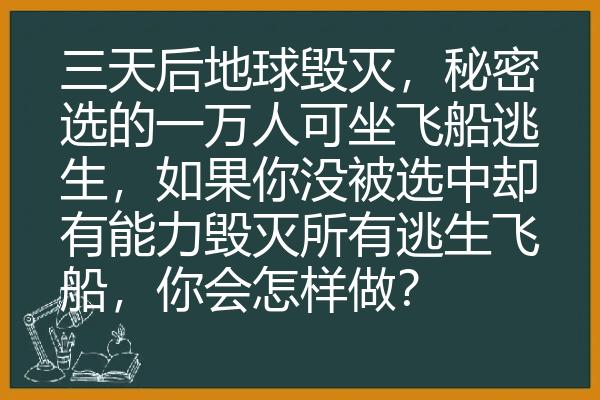 三天后地球毁灭,秘密选的一万人可坐飞船逃生,如果你没被选中却有能力毁灭所有逃生飞船,你会怎样做?