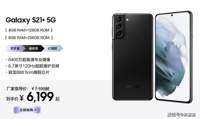 因为三星旗舰手机的价格体系非常的不稳固,是有名的跳水王,一款手机经常会在发布后一两个月之后来一波大降价。具体举例来说,三星S20U也就是三星上上一代的顶级旗舰,其顶配版从9999元的价格一路雪崩到了7699元。无独有偶,三星上一代S旗舰,S21系列是在2021年1月份正式发布的,然而就在一个月后,S21和S21+分别迎来了史诗级的价格大跳水,官方降价1000元,在第三方店铺的降幅甚至达到了1200元,跳水王的称号名副其实。