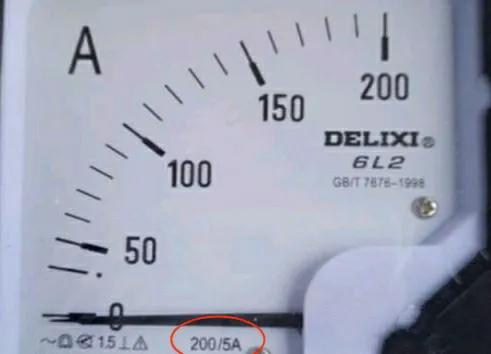 先看电流互感器变比是不是200/5A,因为刻度为200A的电流表,应该配200/5A的电流互感器,如上图红圈内有标志。