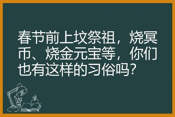 谢谢邀请!有!我是农民,从古至今,我国农村大部分地区。根据遗传下来的风俗习惯,春节前上坟祭祖、烧冥币、烧金元宝等等。我认为:这是对的,纪念祖先亲人,所表达的一种方式。