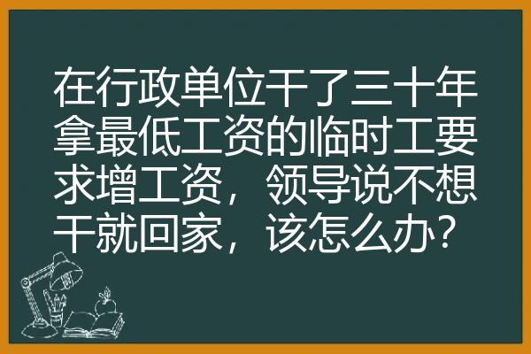 我是职场问答达人流雷电,用简单的回答让您了解机关单位和国企的各种知识!欢迎关注我,如果有不同意见,请下方评论留言探讨!在行政单位干了三十年拿最低工资的临时工要求增工资,领导说不想干就回家,该怎么办?