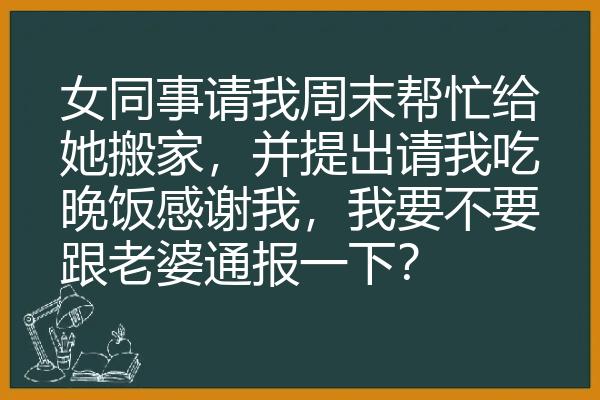 女同事请我周末帮忙给她搬家,并提出请我吃晚饭感谢我,我要不要跟老婆通报一下?