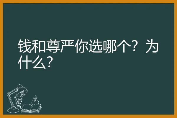 这个问题有点意思,细想还真不好选择,不可能像阿凡提选金钱和正义一样简单说缺什么选什么。其实在现实中,他是一柄双刃剑,又是互为依赖的关系。说明白点,钱可以指所以物质,是人生存的条件,而尊严只是一个人的荣誉与虚荣心。当一个人没有了生存条件也就谈不上尊严了,反过来说,只要有了钱,名声,地位都来了,一个人也就有了保持尊严的资本,否则一切都无从谈起。当然,我这里说的是人正常的社会形态,钱应来路明,君子爱财取之有道,不能搞邪门歪道。还有另一种情况就是不能损人利巳,像战争年代的叛徒们一样是没有好下场的,只会落得个人财两空的结局。