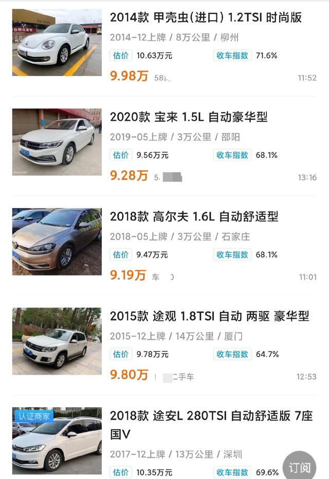 在这个基础上,10万块钱可以买到大众的新车如下: