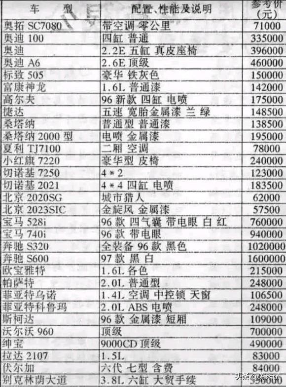其中我们熟悉的桑塔纳,在当时价格是138500元。现在觉得138500元不多,但是,90年代138500元可是天价。