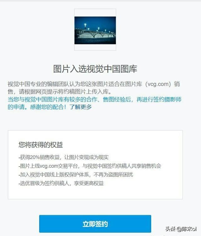 进平台签约,卖照片拿分成这个办法简单又实用。弊端是你的摄影作品得有一定的水准。达到平台签约要求才能在平台上售卖自己的照片。