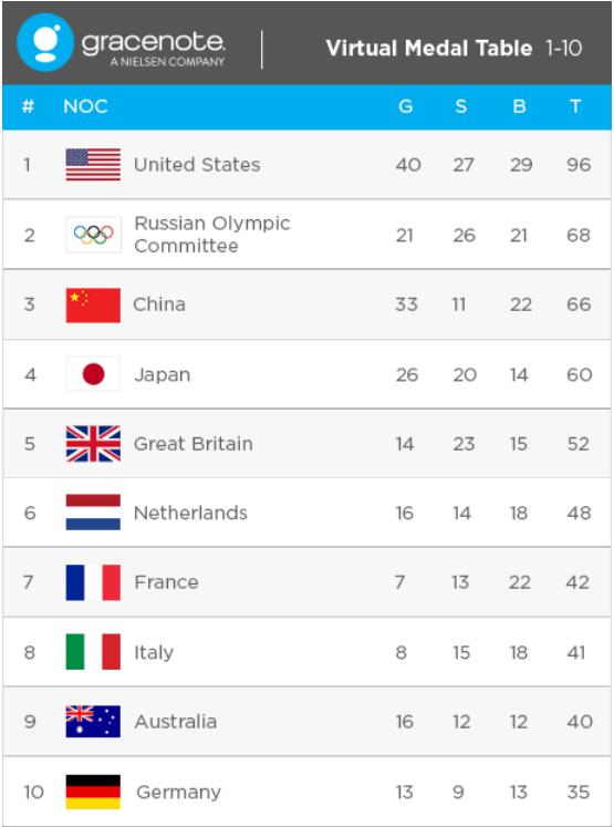 全世界共有206个国家和地区奥委会,有205个将派代表团参加此次奥运会。俄罗斯不能以国家名义参赛,但可以用俄罗斯奥委会(ROC)的名义参赛。俄奥队一直以来都是夺金大热门,根据Gracenote网站本月16日发布的东奥会奖牌榜最新预测中,俄奥队21金26银21铜,金牌榜第四,奖牌榜第二。