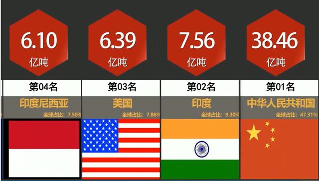 2020年美国煤炭产量为6.39亿吨,位居世界第三,仅次于中国和印度。中国煤炭产量38.46亿吨,高居世界第一,占全球煤炭生产总量的47%。