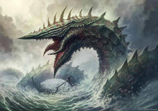 大海蛇(sea serpent),是公元前就出现在多种神话体系中的传说生物,比如巴比伦神话中的提亚玛特(Tiamat),希伯来神话中的利维坦(Leviathan),希腊神话中的塞特斯、艾奇德娜和斯库拉(Cetus,Echidna,Scylla),以及北欧神话中的耶梦加得(Jörmungandr)就是此类生物。