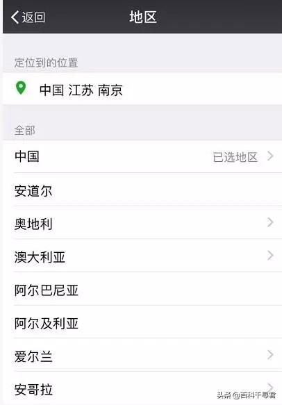 等你注册好微信以后,你还可以在个人信息里重新设置自己的显示地区,而在“我的地区”这个选项里,安道尔排名第一,如果你不选择地区,系统还会默认你的地区就是安道尔。