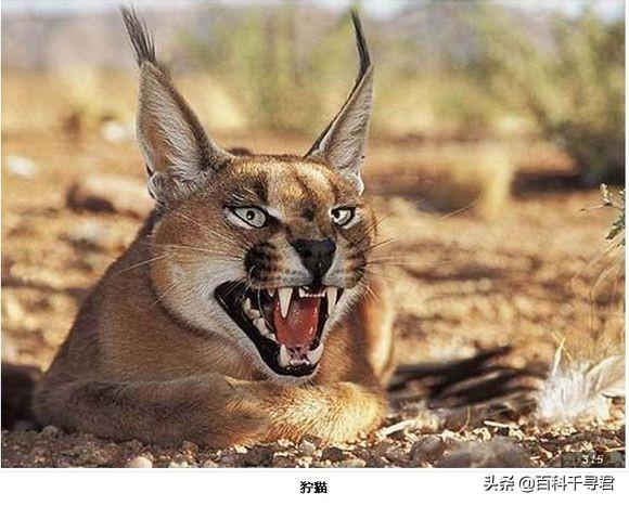 狞猫隶属于猫科狞猫属,主要分布在干旱的热带草原、疏林地带,体长0.6-0.9米之间,体重一般在10公斤以内,体型要比猞猁小一些。猞猁习惯于夜间捕食,捕猎对象通常是比它体型小的动物,比如老鼠、野兔、小鸟等,有时也会捕食稍大些的动物,比如小羚羊,依靠擅长爬树的技能,把猎物拖到大树上慢慢享用。
